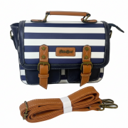 B85133-C Navy and White Striped Canvas Flap Crossbody Satchel L27 W8 H20